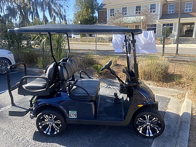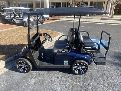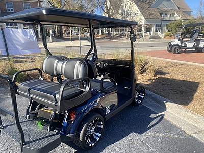Existing Items on car Include: - Hinged Windshield - Rear View Mirror - Head/ Tail/ Brake Lights - Turn Signals - Extended Top - Rear Flip Seat - Std Seats Black/Gray - 10" Wheels and Tires - Energy Meter - LITHIUM - Used golf car, sold as is. No Warranty